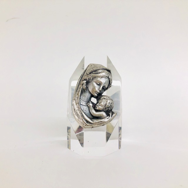 アクリルの台座に金属製のレリーフが接着された置物です。 SHOP URL:https://laparole.base.shop ■ サイズ / 重量 高さ 約4.5cm × 横幅 約3cm × 奥行 約3cm / 重量 約31.5g ■ 素材 アクリル製 聖母子 / せいぼし / マリア / maria