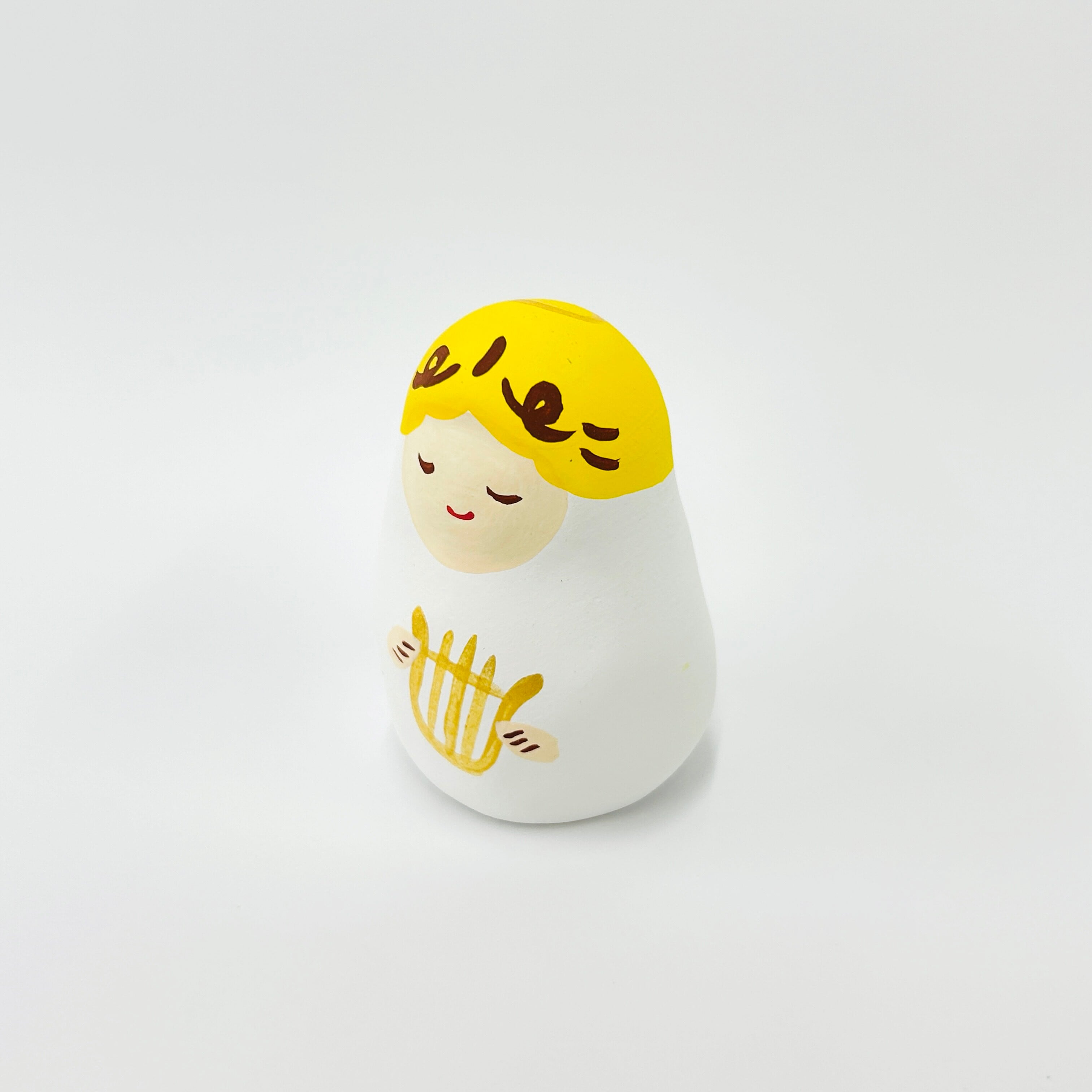 手のひらサイズの可愛らしい陶器人形の中には、24種類の聖書の一節と、その箇所についての神父さまからのメッセージが添えられたおみくじが入っています。さらに、水溶紙製のおみくじには花の種がセットされており、植物の成長とともに「みことば」をお楽しみいただけます。