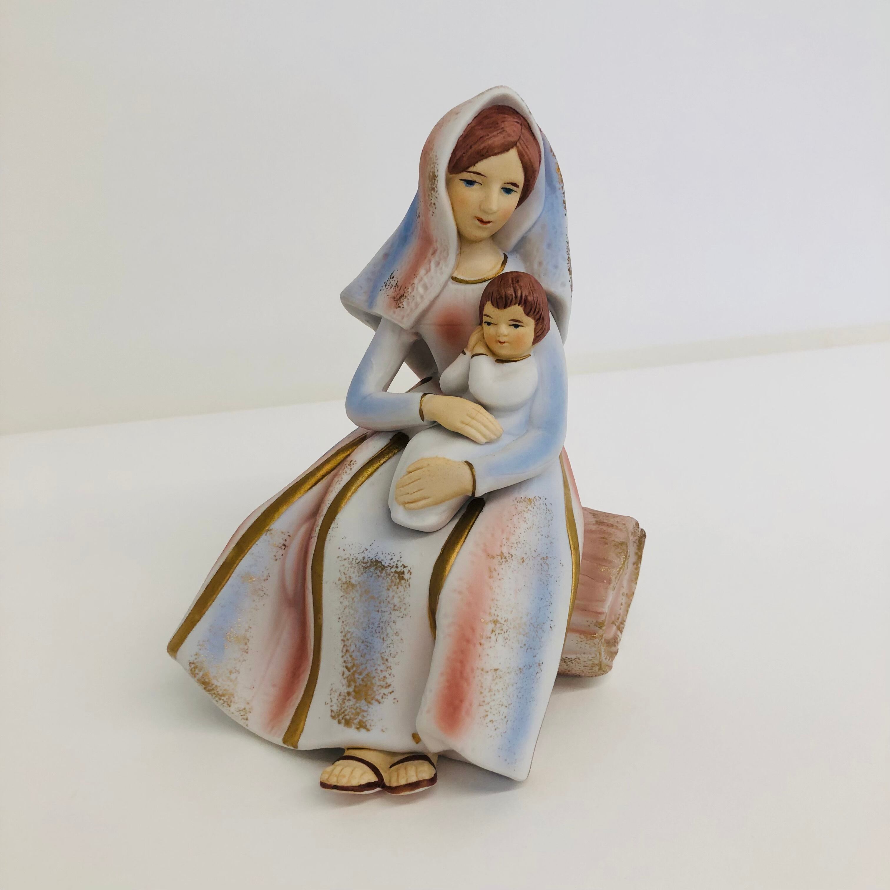 優しい着色がされた、落ち着いた雰囲気のある聖母子像です。
