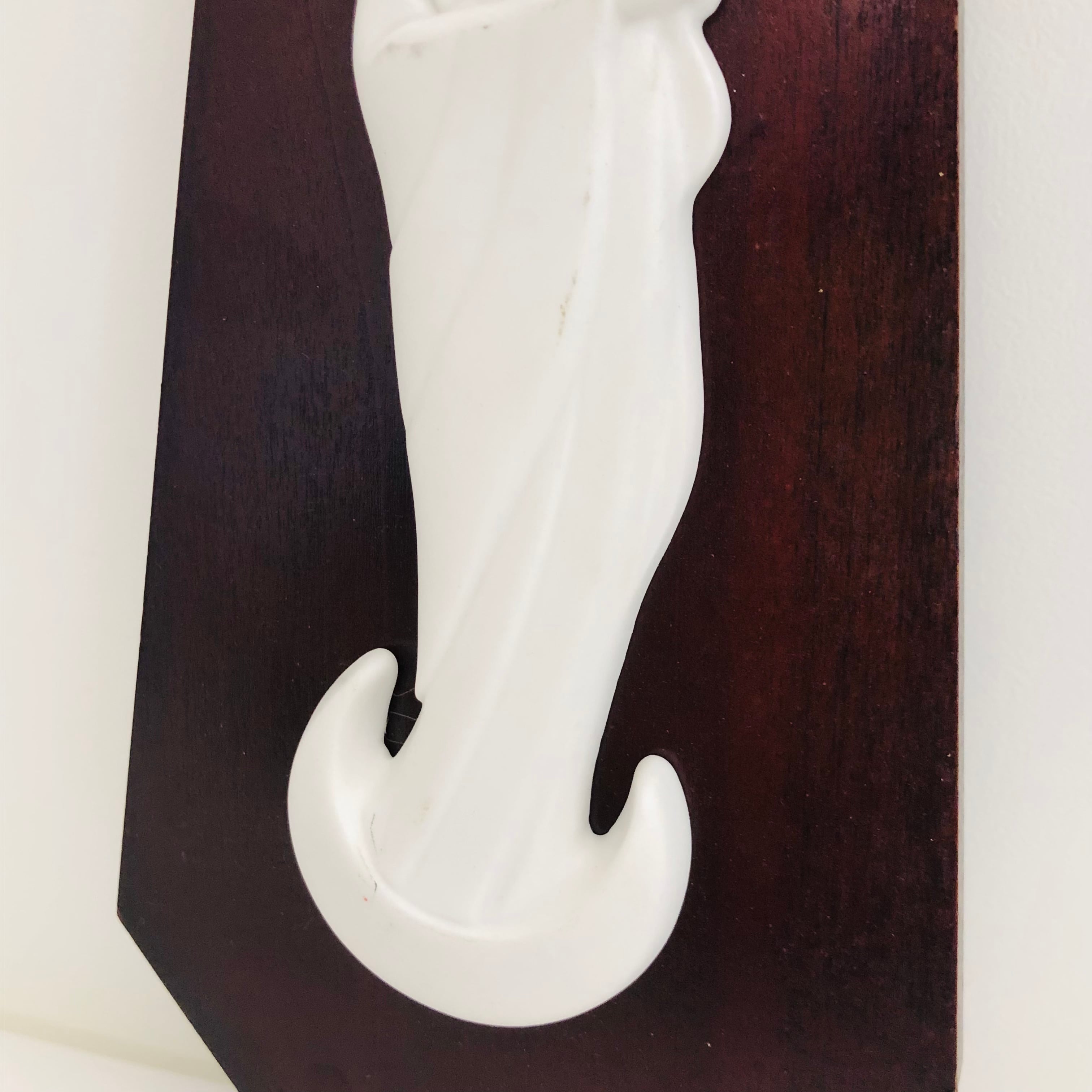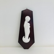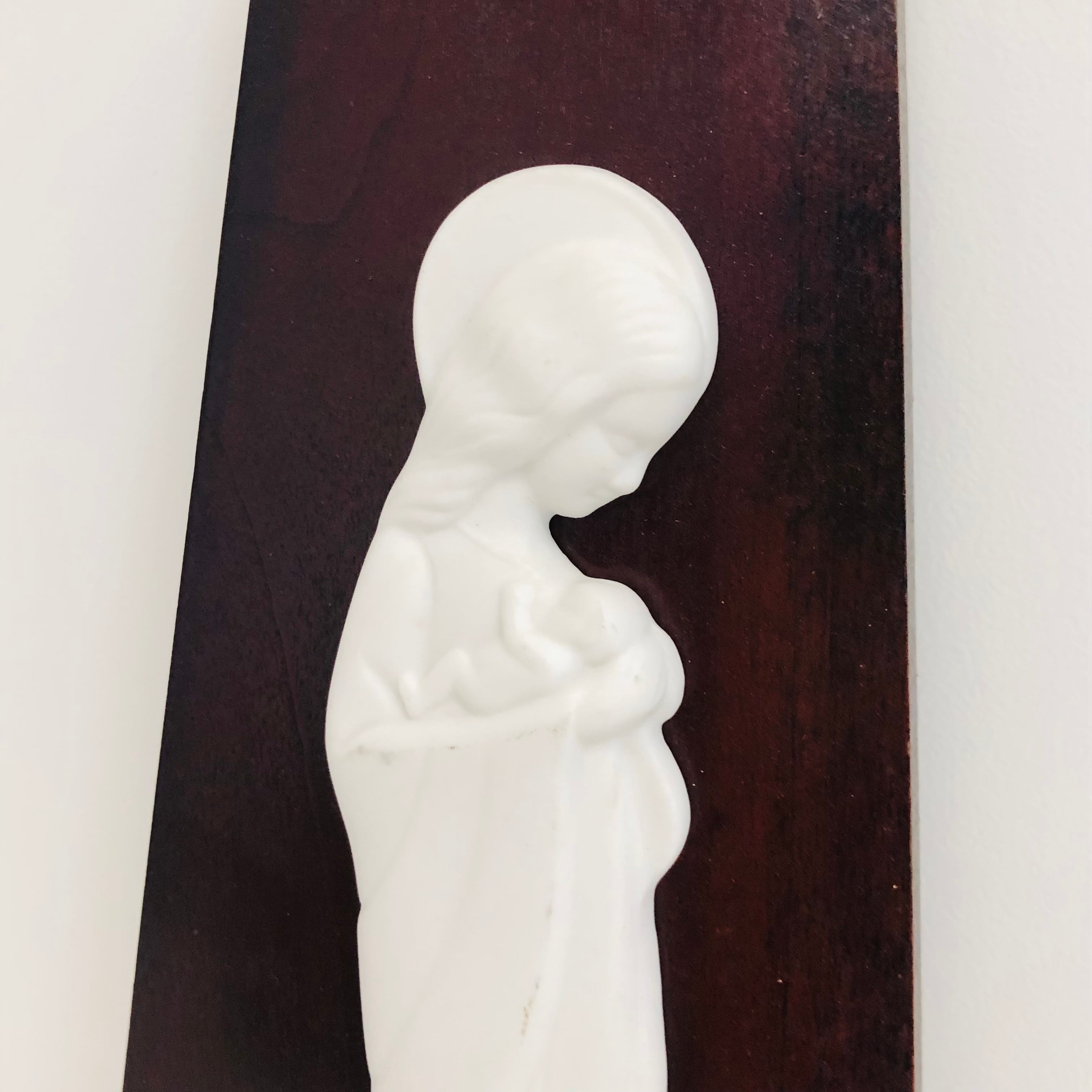 三日月の上に立つ聖母子のレリーフ付きの、レトロ壁掛けです。