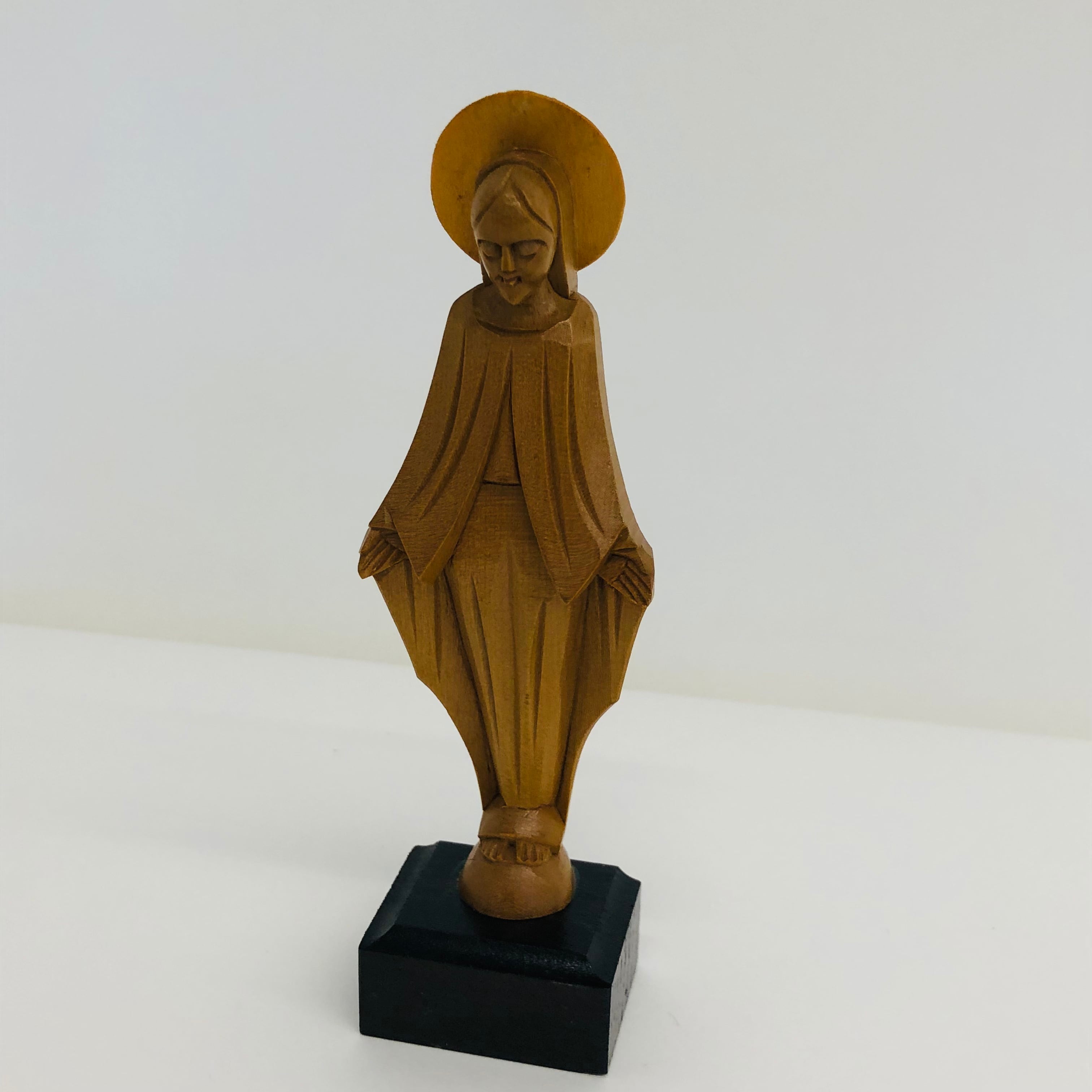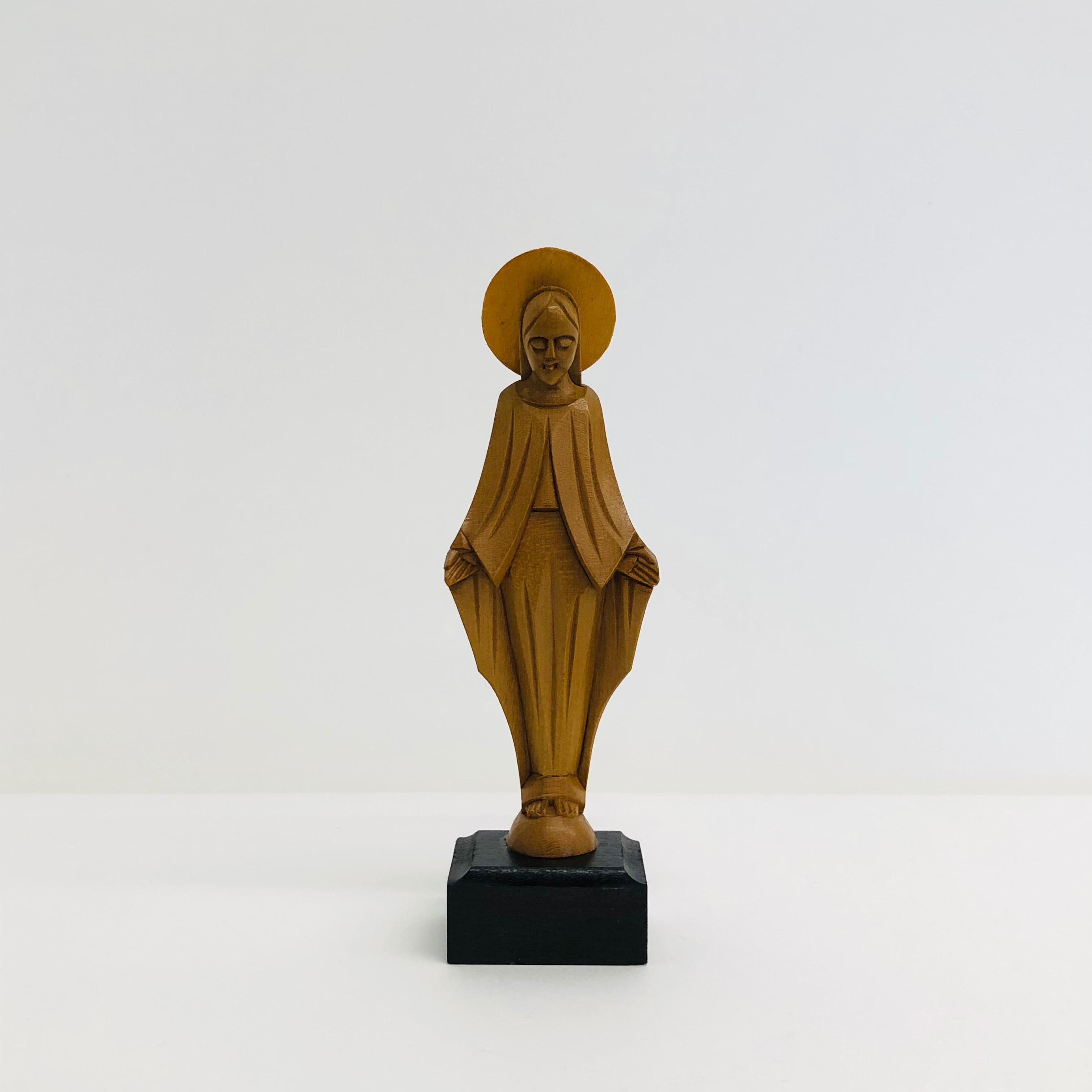 木彫りで、どことなく和を感じる手乗りサイズの聖母像です。
