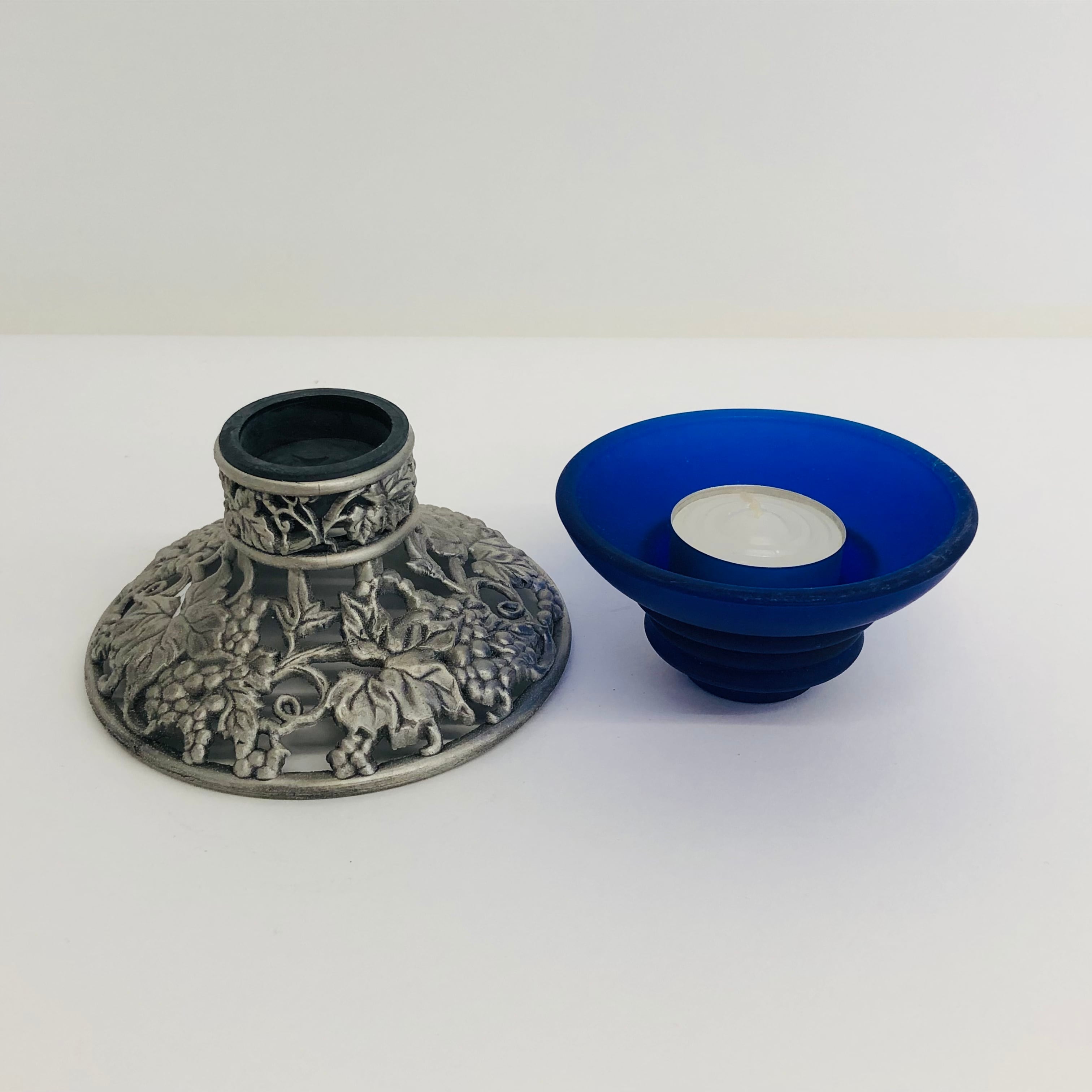 上下で取り外しが可能な金属台付きガラス燭台です。