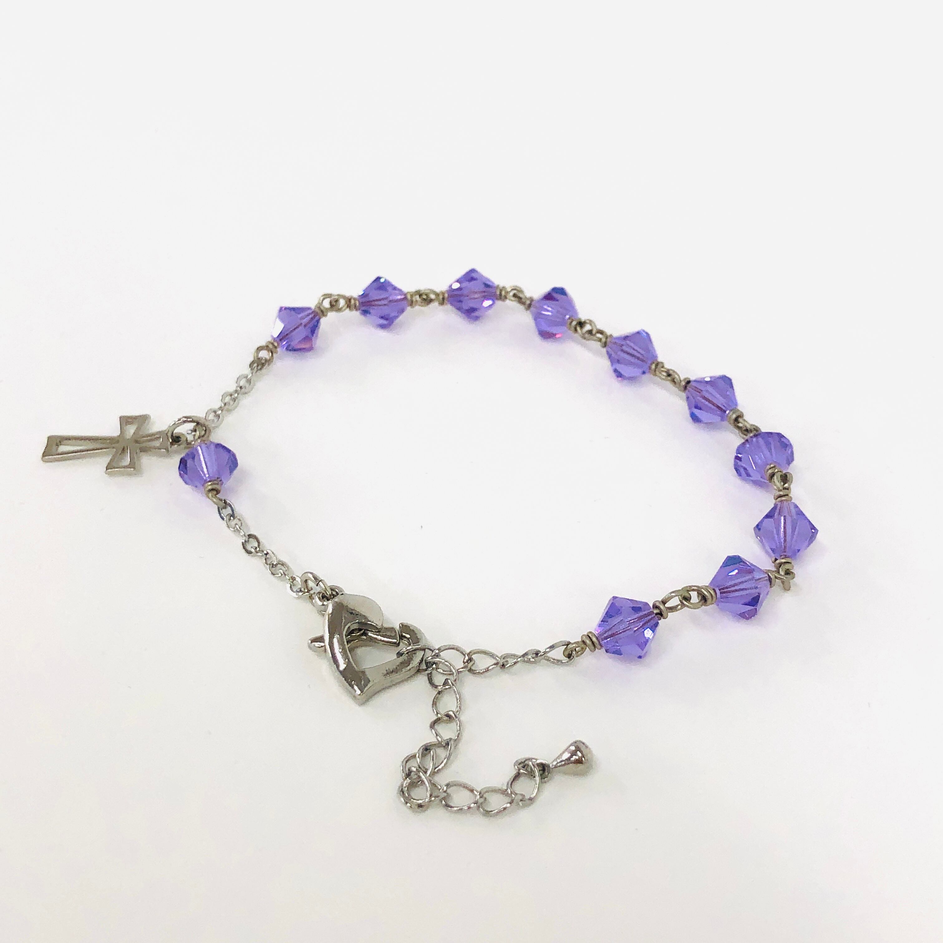 プレシオサ社の鮮やかなガラス玉が映える一連ロザリオブレスレットです。