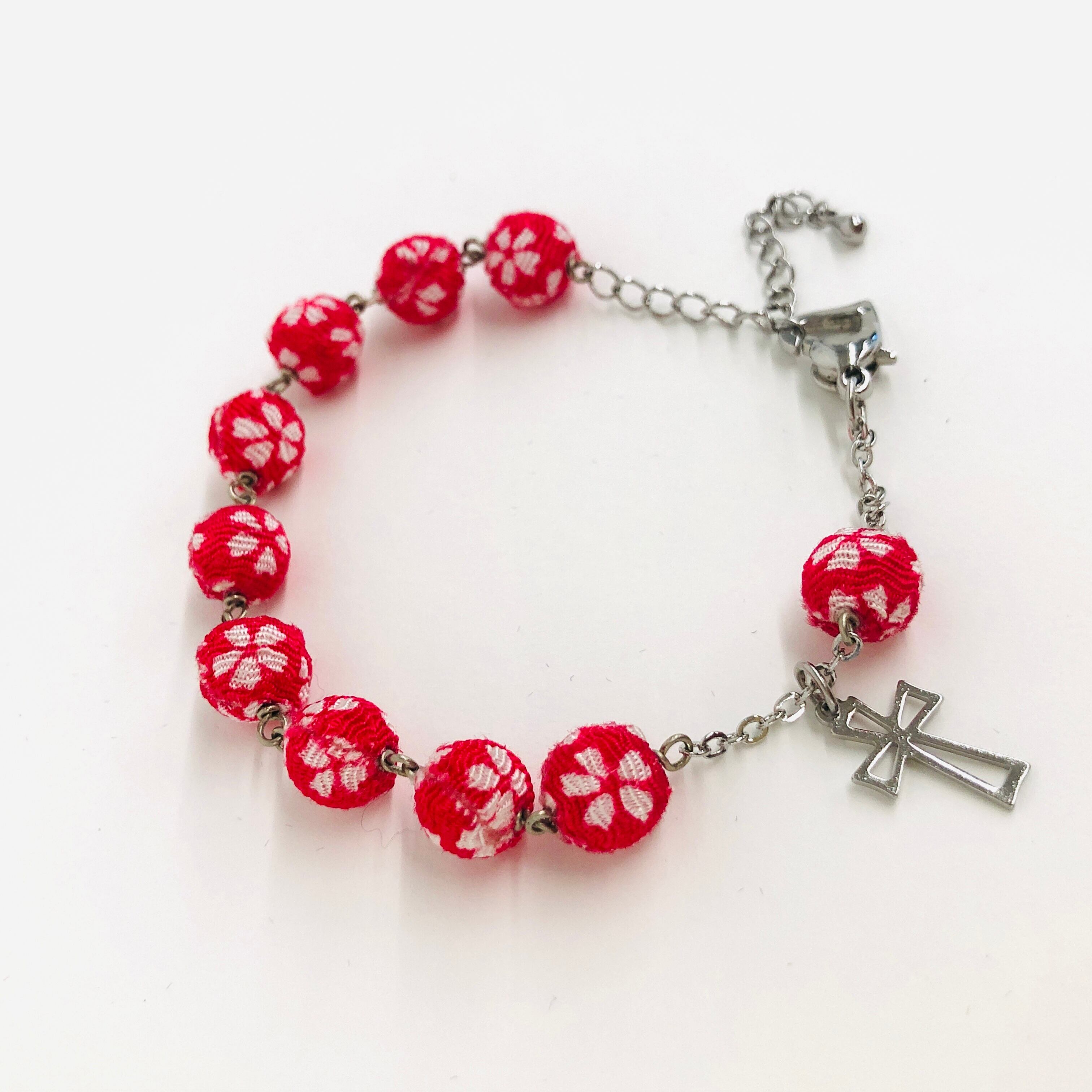 ちりめん玉が優しい雰囲気を感じさせてくれる一連ロザリオブレスレットです。