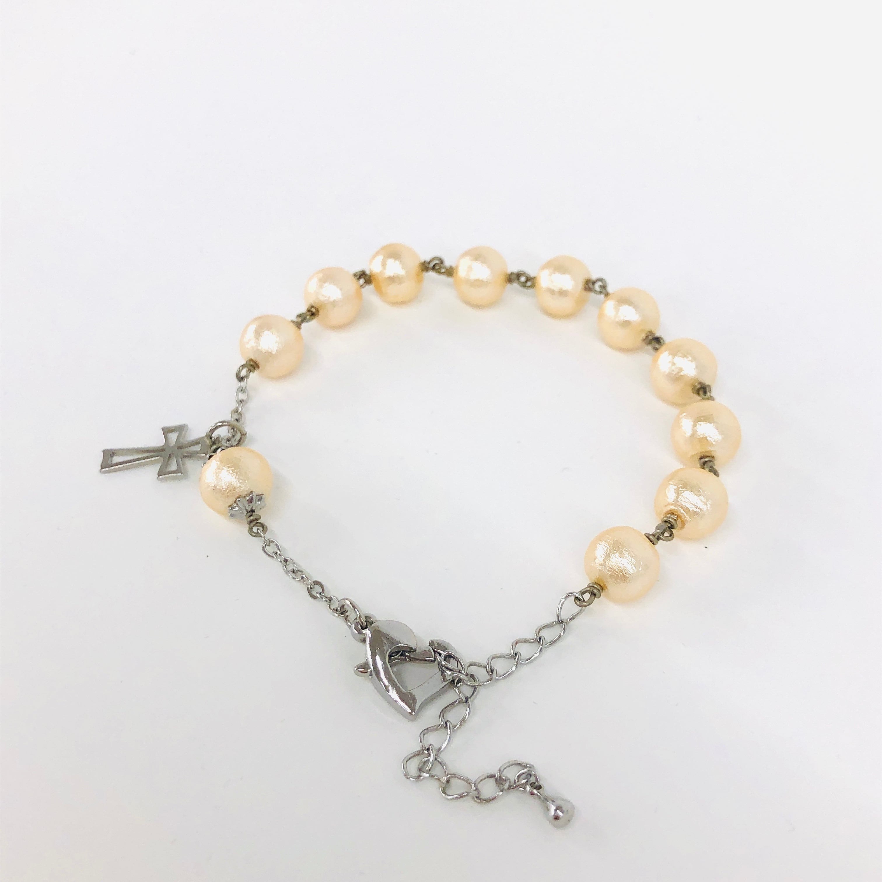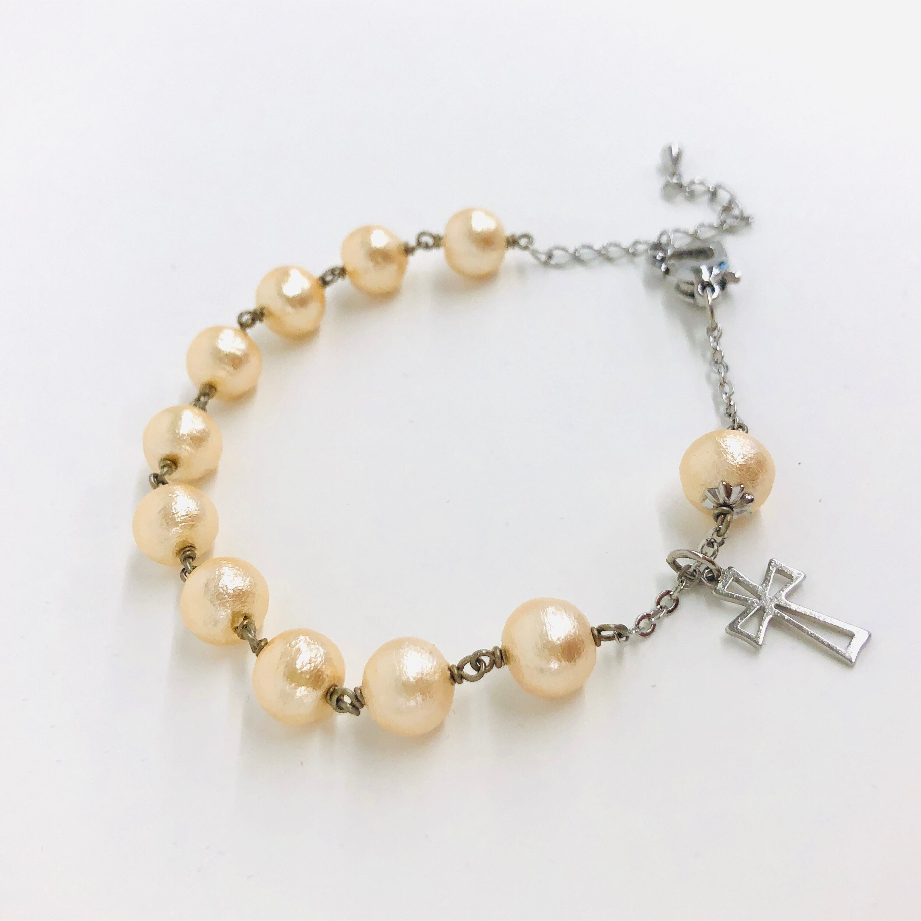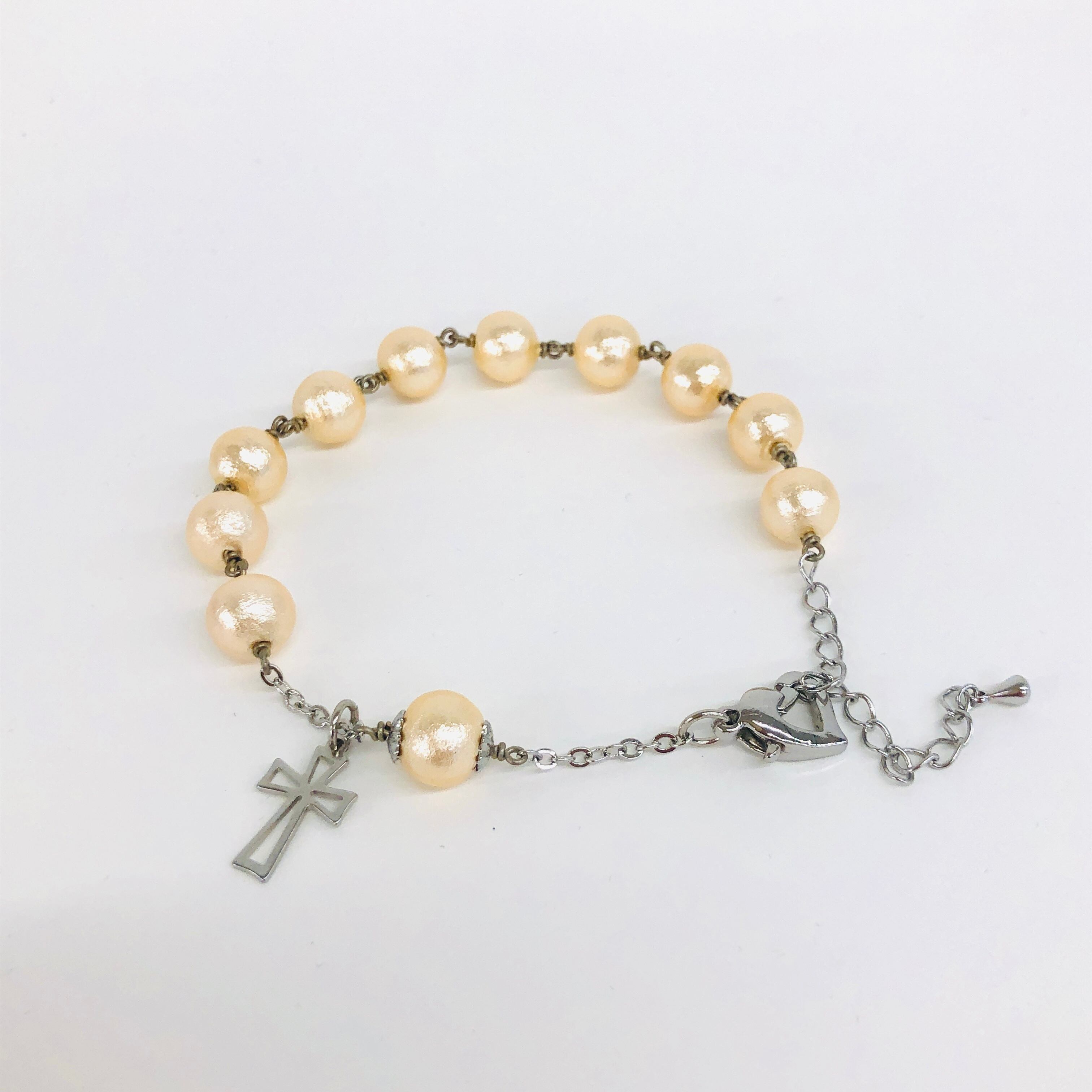 コットンパール製の軽い着用感が心地よい一連ロザリオブレスレットです。