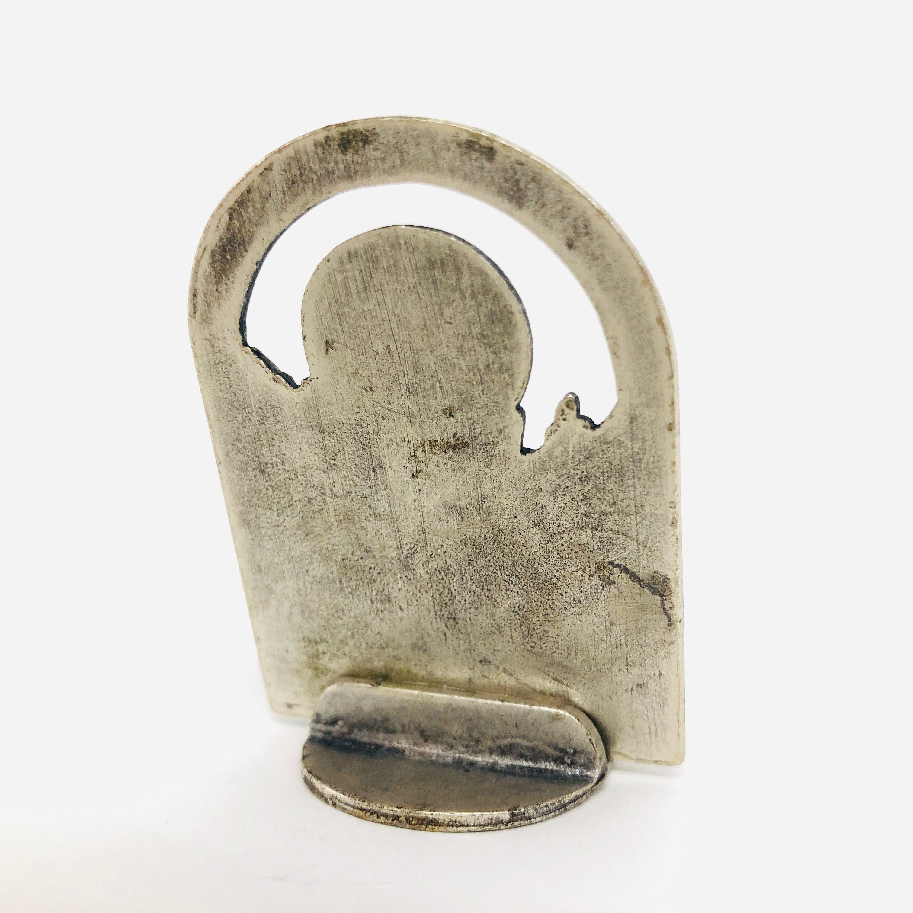 カリスと麦の穂とぶどうが描かれた、金属製の卓上置物です。