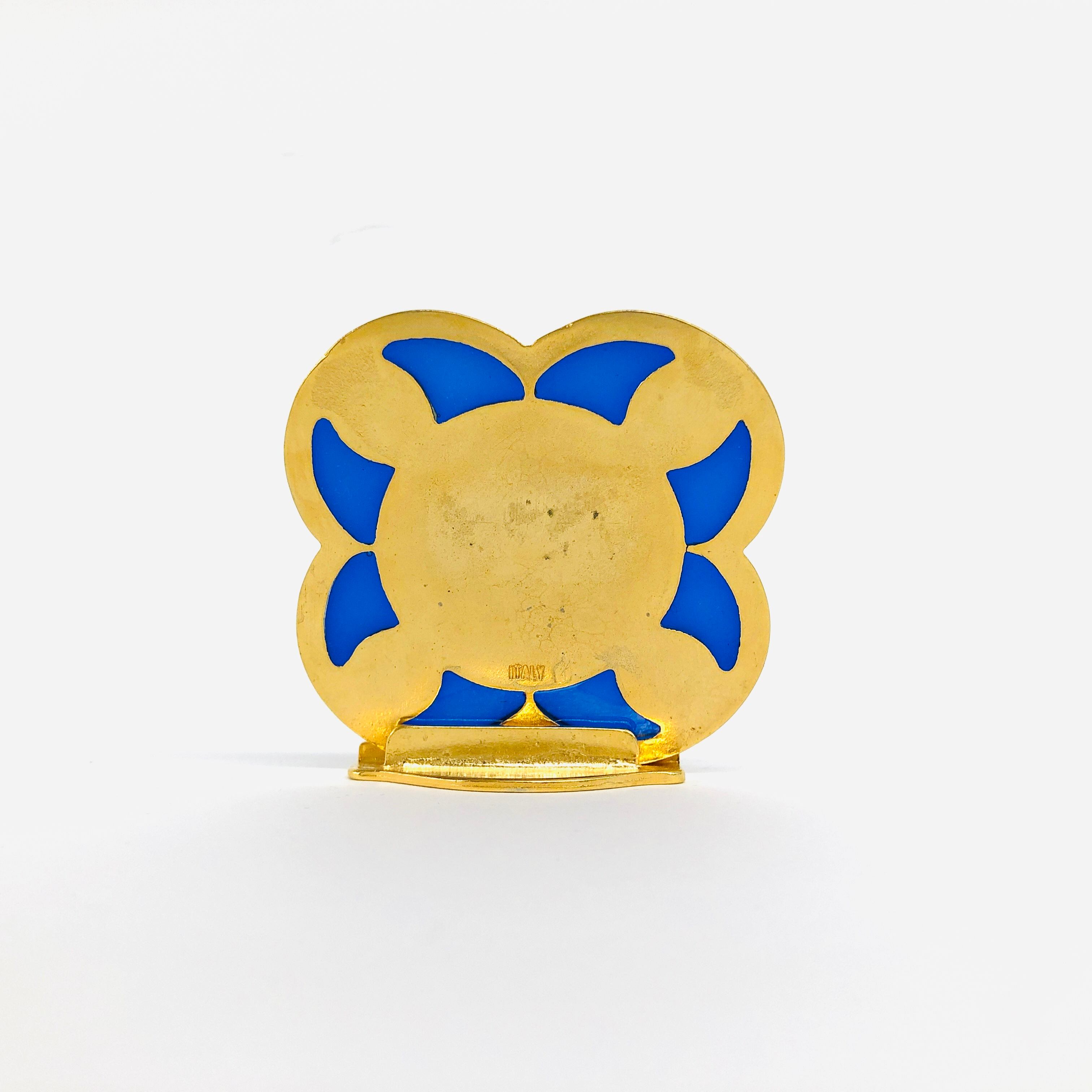 青と水色のカラーリングが美しい金属製の卓上置物です。