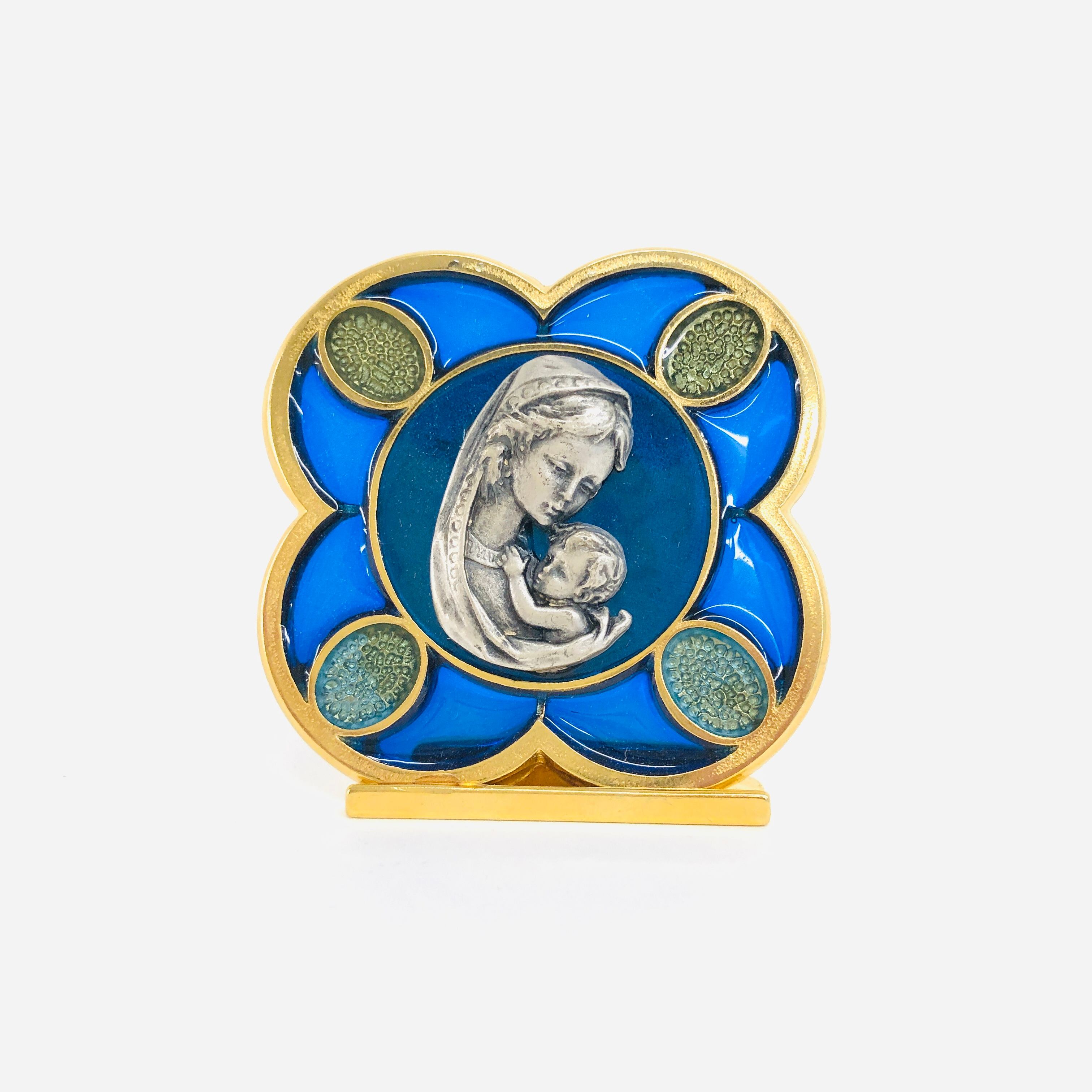 金属製の聖母子のレリーフがついています。