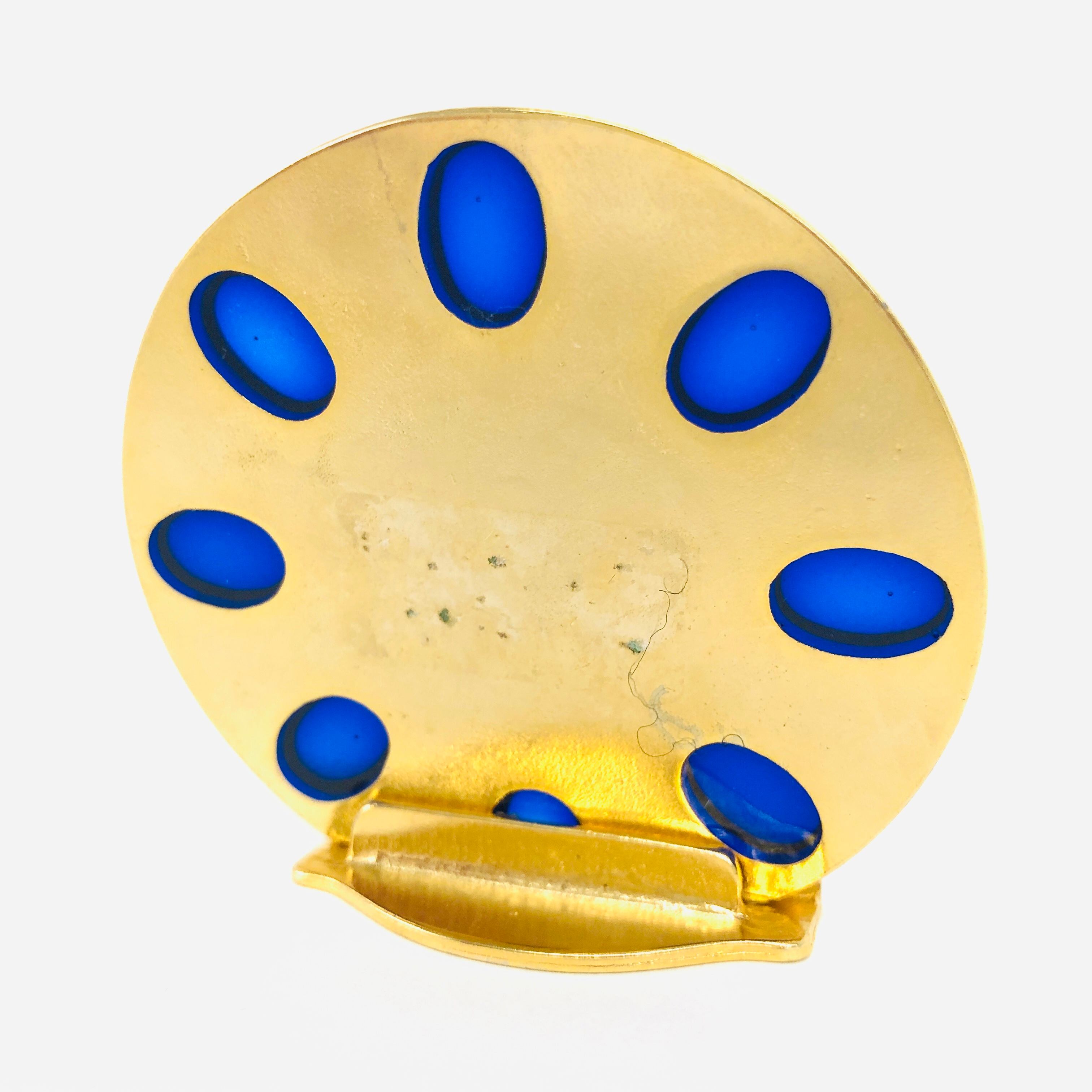青と水色のカラーリングが美しい金属製の卓上置物です。