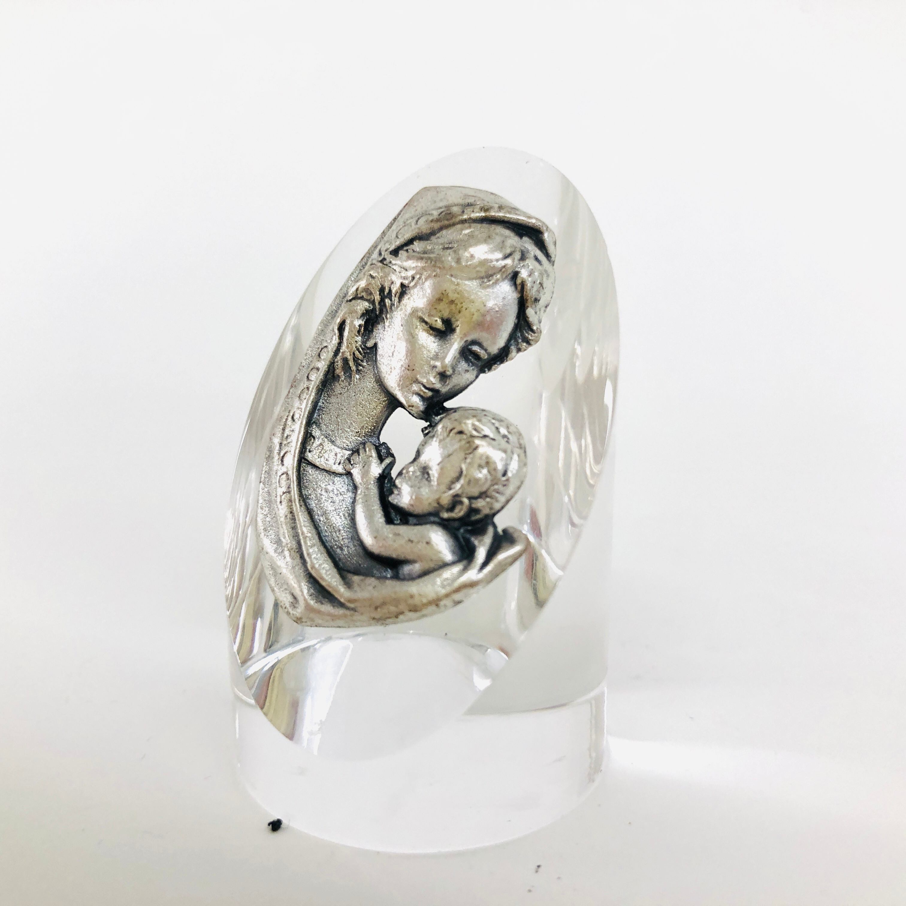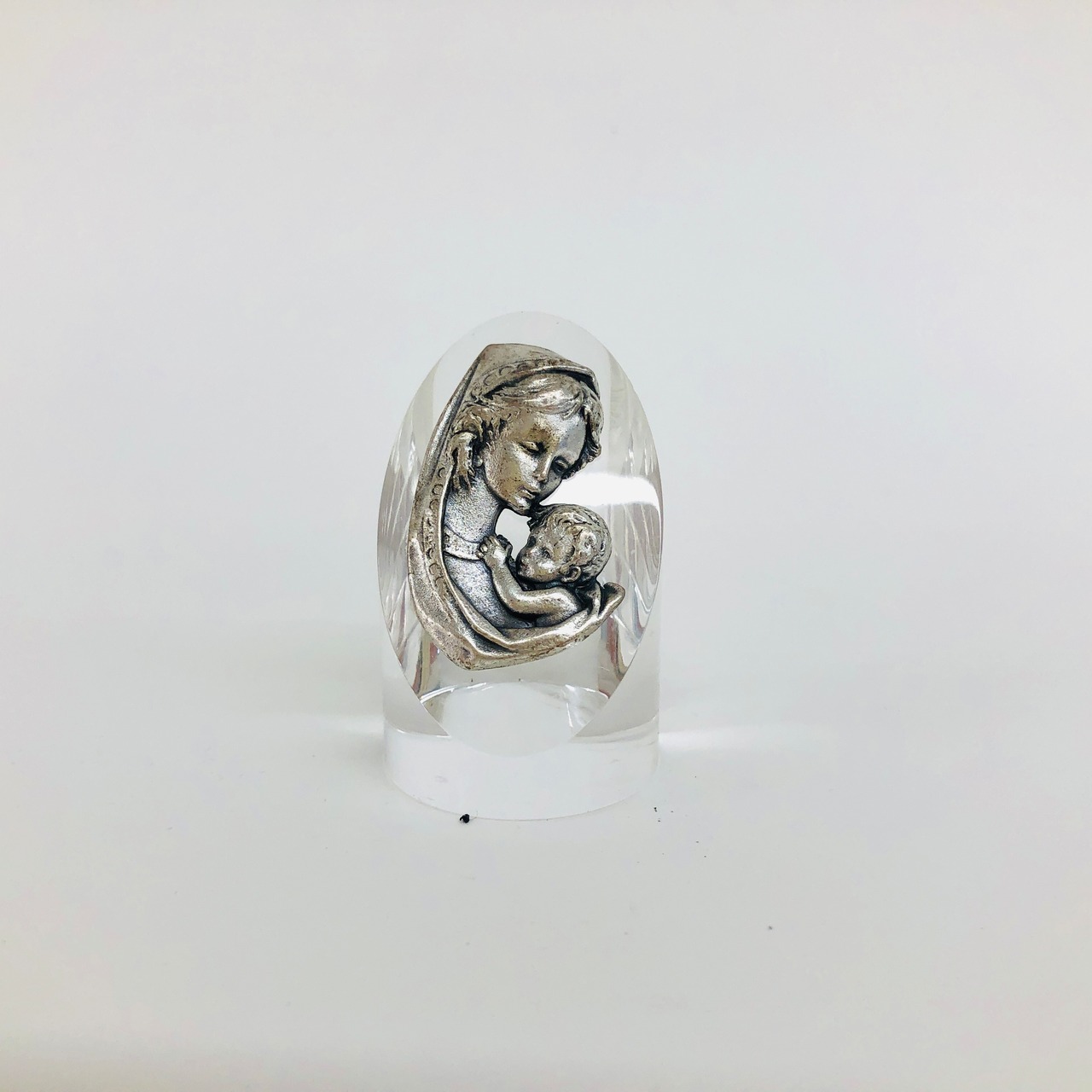 アクリルの台座に金属製のレリーフが接着された置物です。